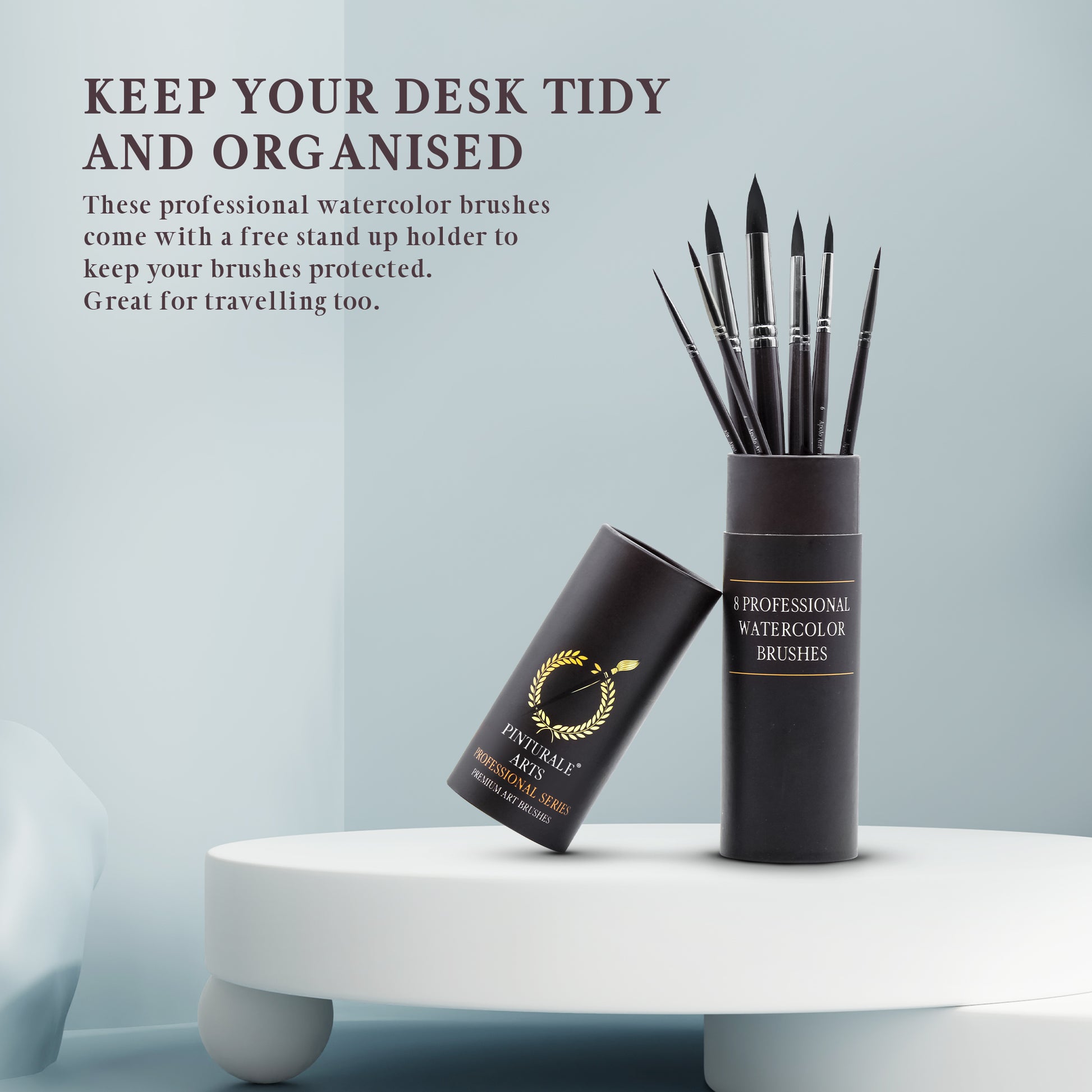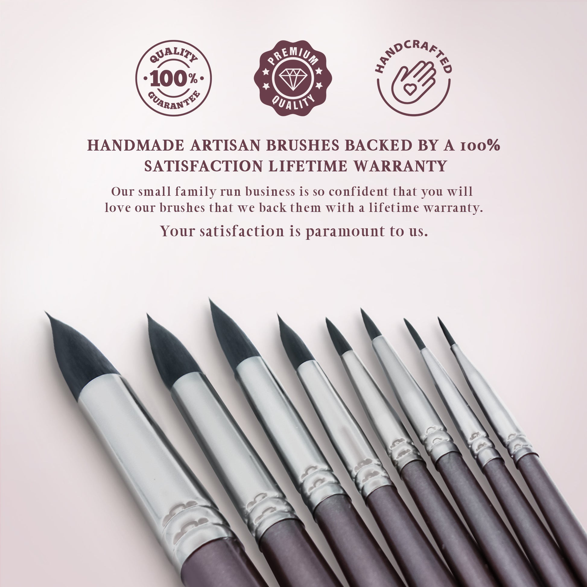 Pinceles Acuarela Profesional | Round Series | Set 8 Pinceles Redondos | Gran Absorción Y Control del Agua para Un Flujo Constante