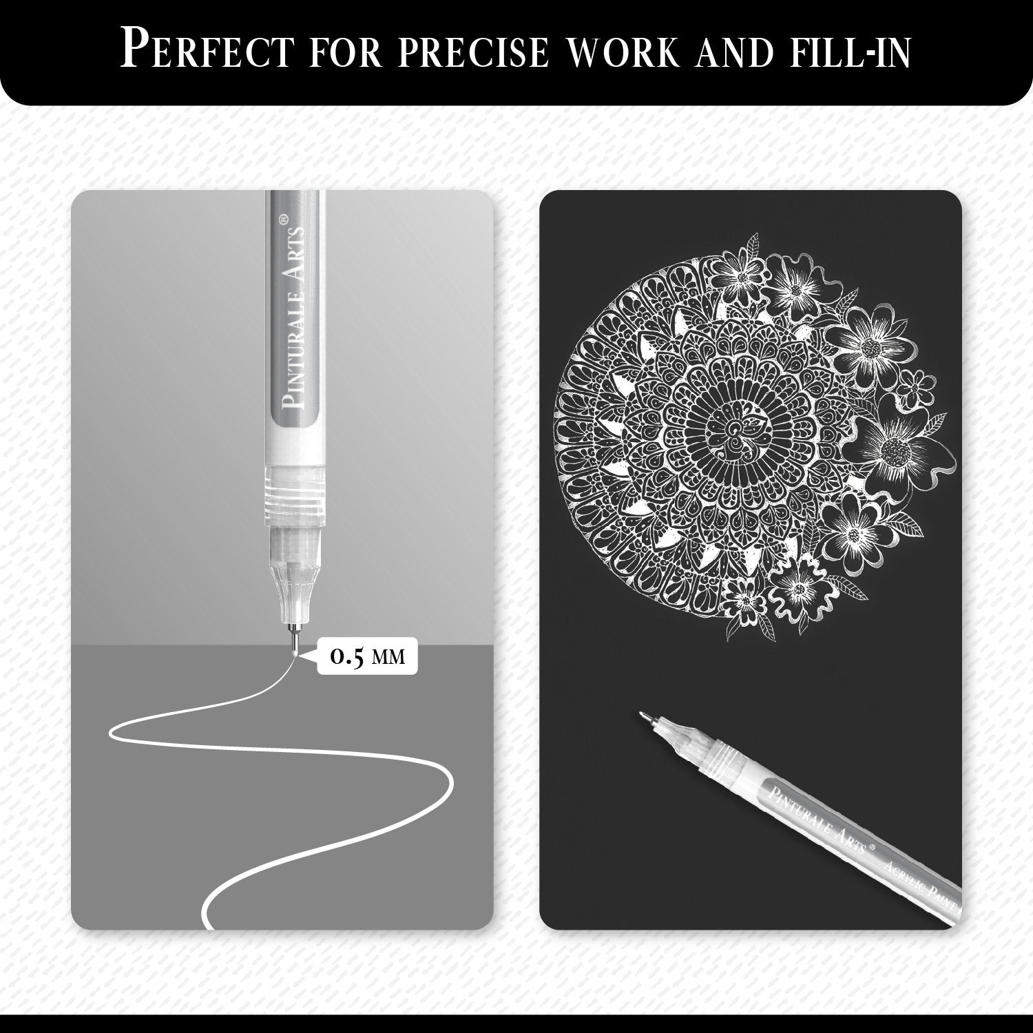 - Detalles Precisos - Rotulador blanco con puntas extrafinas. Punta fina de 0,7mm: ideal para dibujar y detallar; punta extra fina de 0,5mm: perfecta para detalles aún más precisos.
